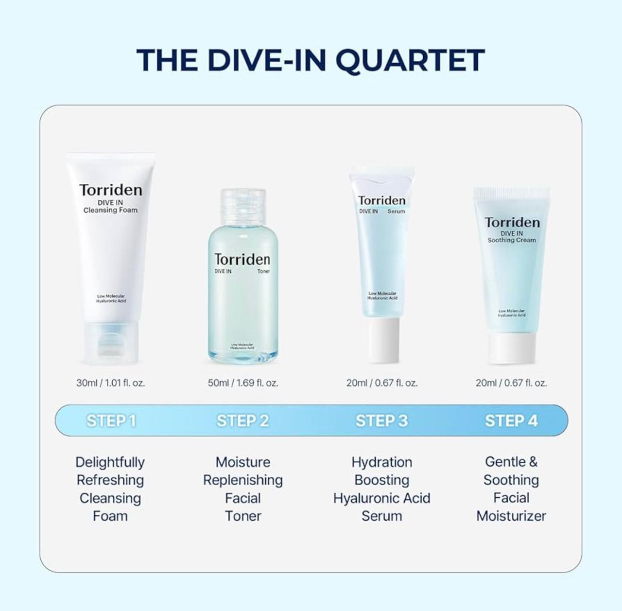 1. Torriden Dive In Cleansing Foam (30ml): es un limpiador diario que elimina suavemente las impurezas a la vez que hidrata la piel en profundidad.